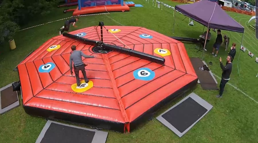 Get ready for an action-packed showdown on our Last Man Standing Total Wipeout Game. 🌪️ Featuring a rotating arm that sweeps in a thrilling circular motion, your challenge is to stay on your feet while the arm picks up speed!